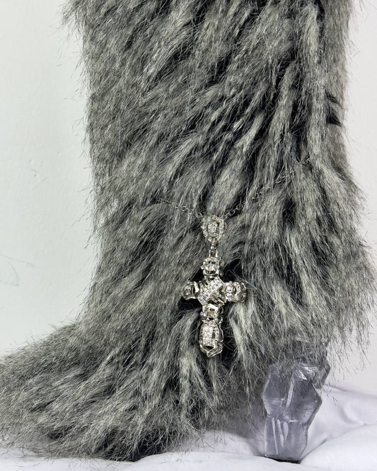 Chanel Fall 2010 Runway Faux Fur Fantasy Yeti Boots Icicle Heels 38ะก