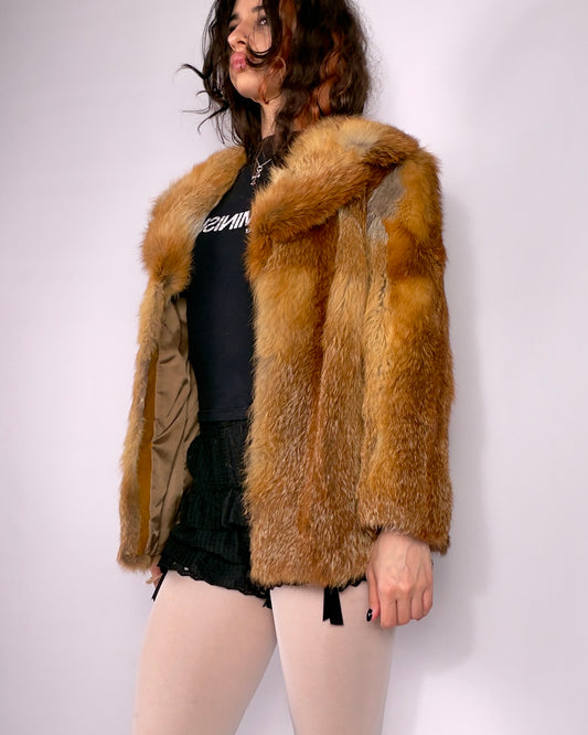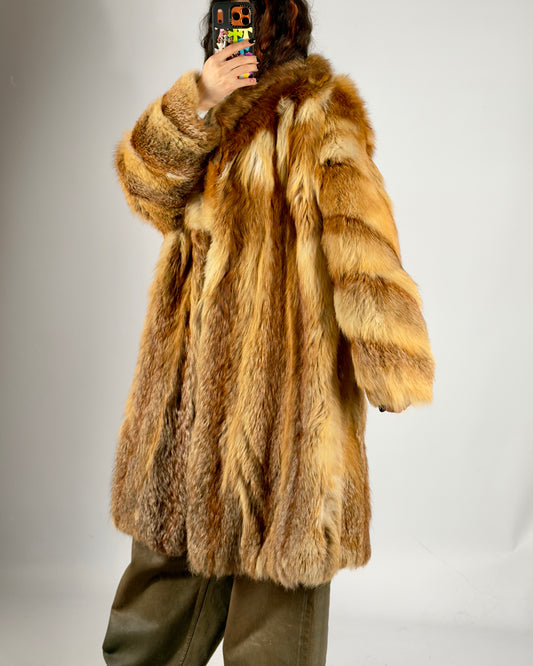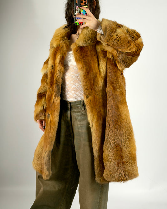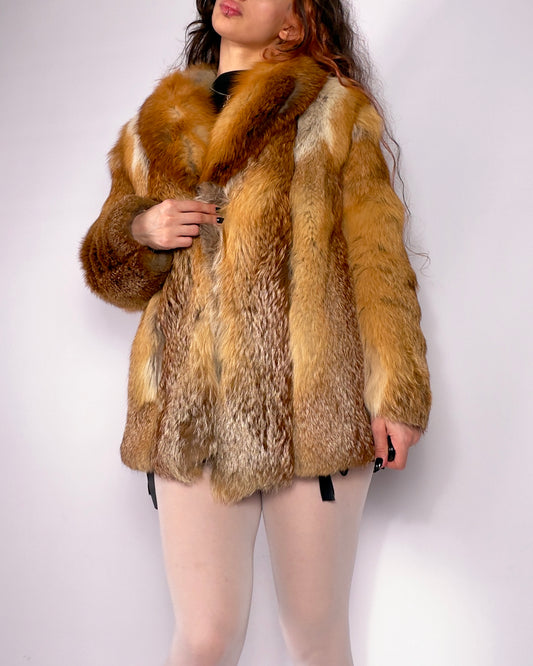 Vintage Red Fox Fluffy Fur Coat — M/XL