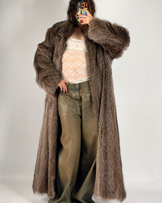 Vintage Long Fox Fur Fluffy Coat — M/L