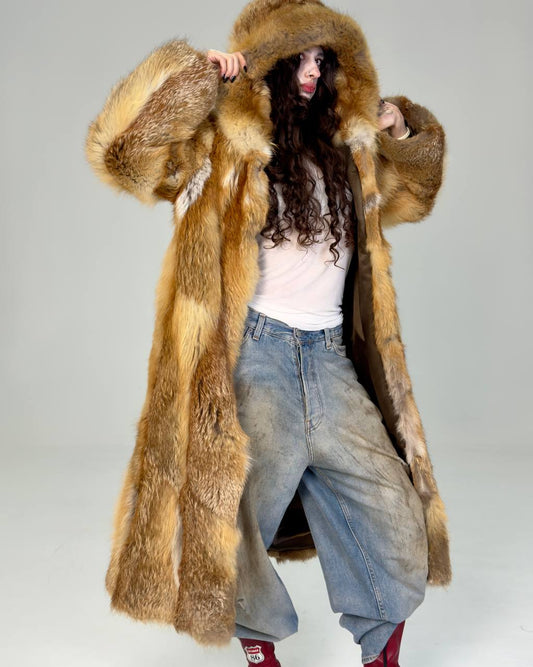 Sold outVintage Long Fox Fur Hooded Coat