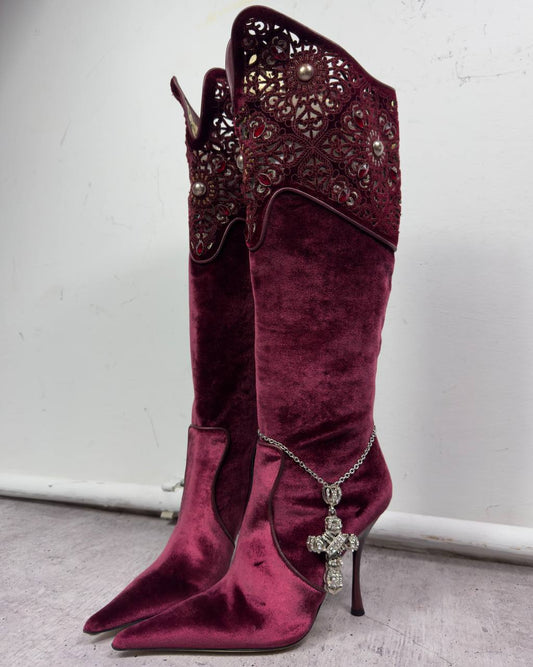 Gianmarco Lorenzi Vintage Velvet Boots Deadstock — 37