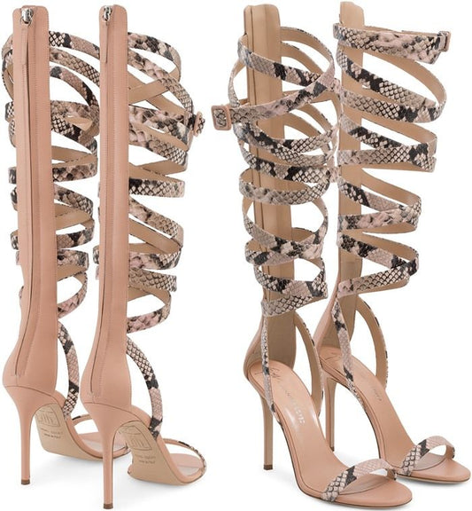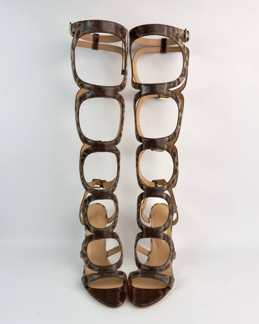 Sergio Rossi Snakeskin Arabesque Gladiator Heels — 39.5/40