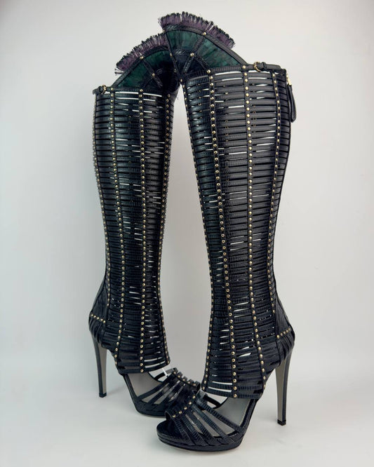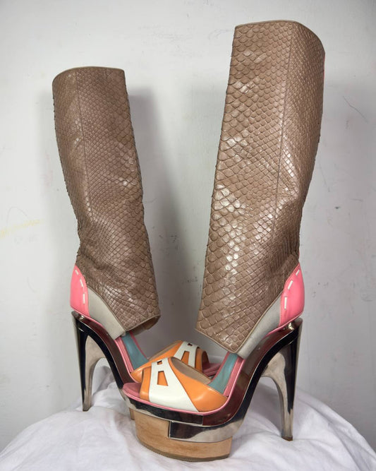Versace 2010 Triple Platform Runway Python Boots — 38