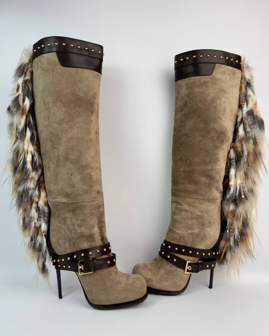 Gianmarco Lorenzi Vintage Fur Suede Heel Boots