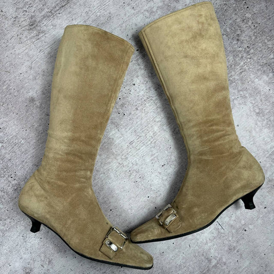Prada Vintage Suede Boots Kitten Heels 37/38