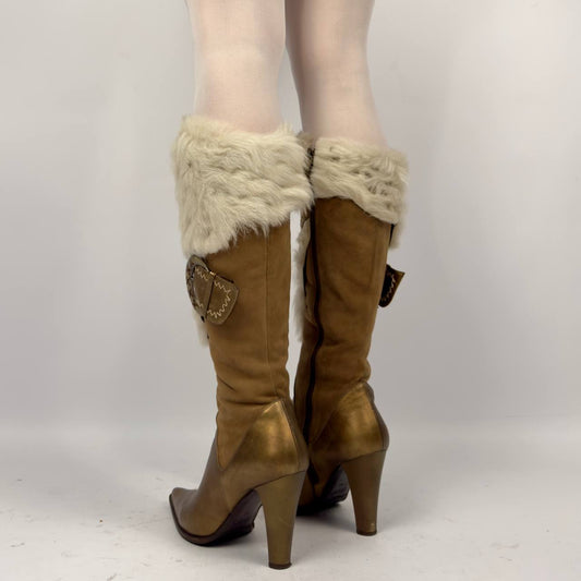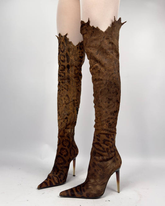 Gianmarco Lorenzi Vintage Italian Pony Fur Leopard Boots — 37