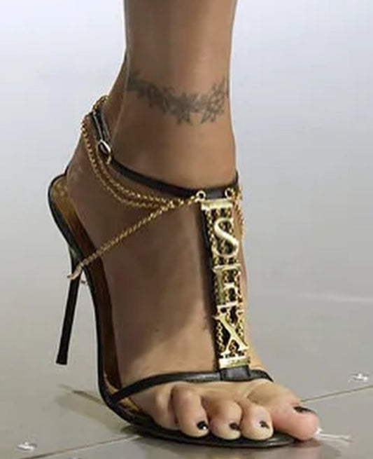 Dolce & Gabbana S/S 2003 'Sex & Love' Black Leather SEX Heels 39/39.5