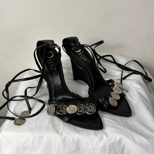 Dior Vintage Coin Wrap Wedge Monogram Heels 38/39