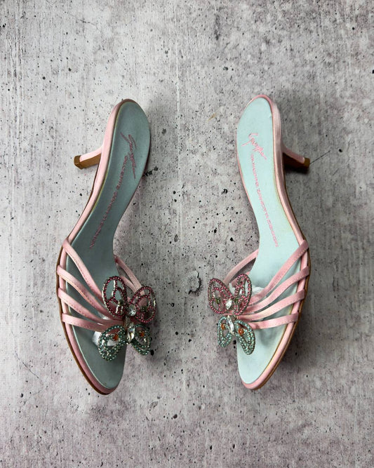 Giuseppe Zanotti S/S 2001 Gem Butterfly Pastel Kitten Heels — 36.5