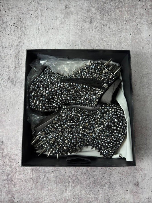 Zanotti Deadstock Rare Swarovski Crystals Spike Wedge Boots 40/40.5