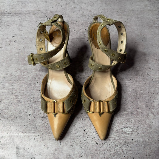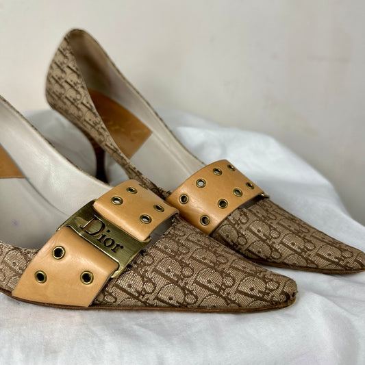 Dior Galliano Vintage Monogram Buckle Heels 39/39.5
