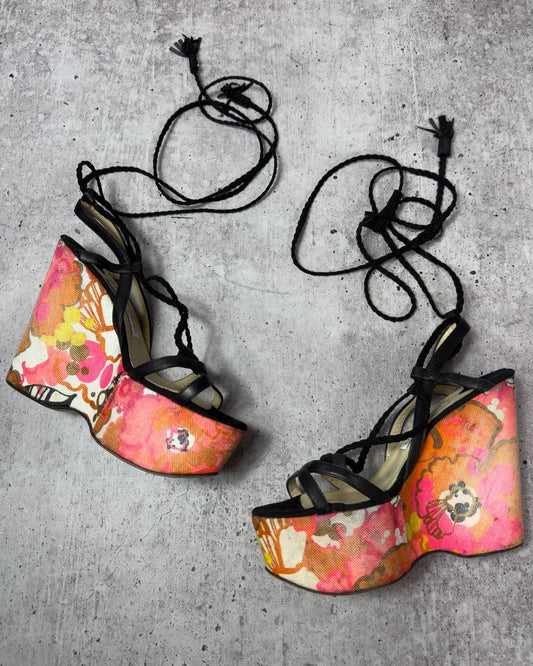Jimmy Choo Vntg Floral Wrap Wedge Heels — 38/39
