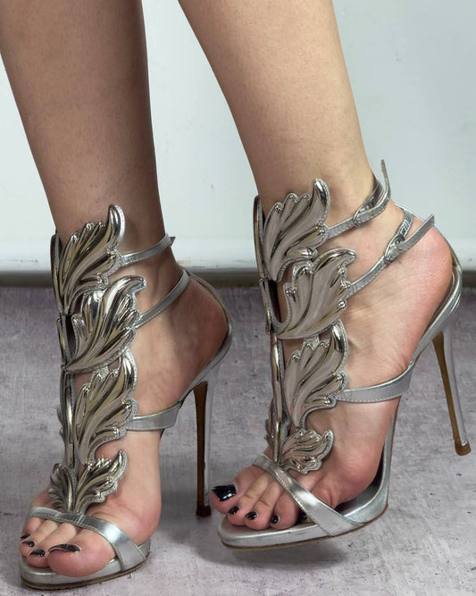 Giuseppe Zanotti Cruel Summer Wing Silver Heels — 38/38.5