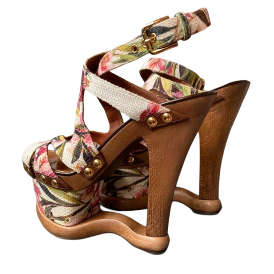Dolce Gabbana Vintage Floral Cut Out Wedge Heels — 37