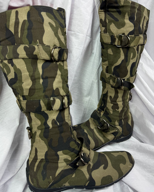 Vintage Camo Buckle Moto Boots 39.5/40.5