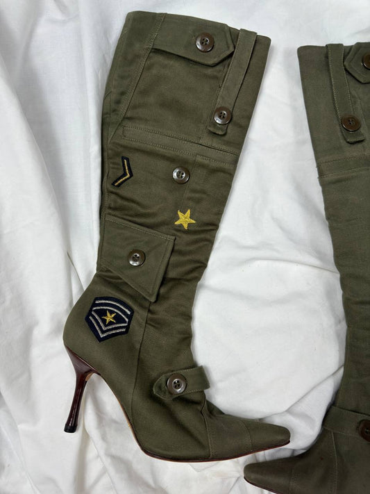 Dolce Gabbana Vintage Khaki Military Boots 36/36.5