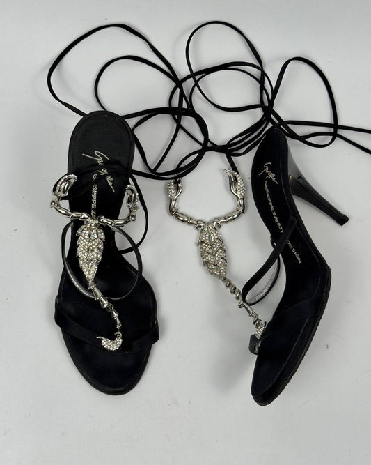 Giuseppe Zanotti Vintage Scorpion Lace Wrap Heels — 37/37.5