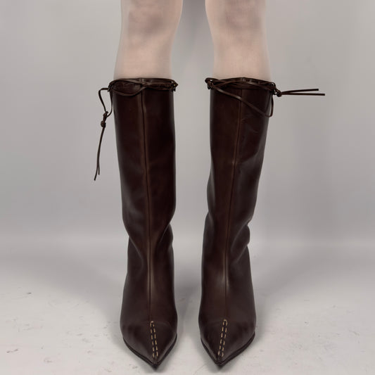Fendi Brown Leather Kitten Heel Tube Boots — 37.5