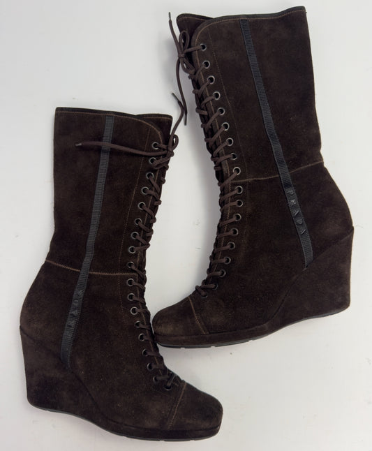 Prada Vintage Suede Wedge Boots — 37/37.5