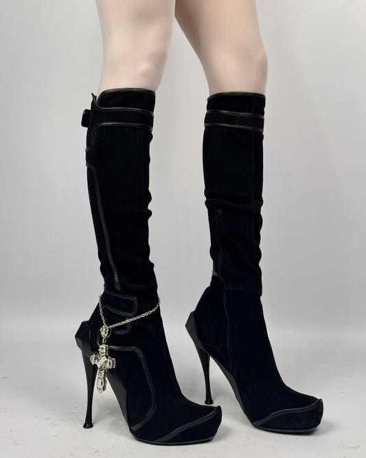 Dolce Gabbana FW02 Vintage Butterfly Suede Boots — 36, 38