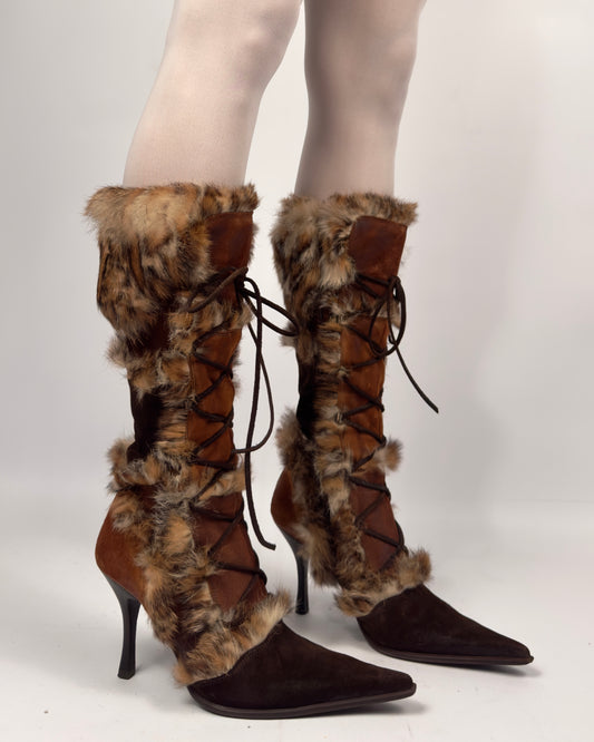 Vintage Italian Pony Fur Cowboy Heel Boots — 38