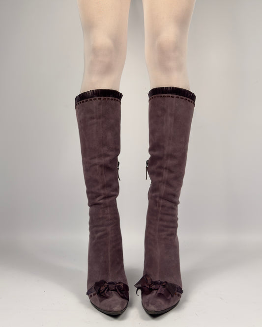 Casadei Vintage Suede Bows Boots — 37/37.5