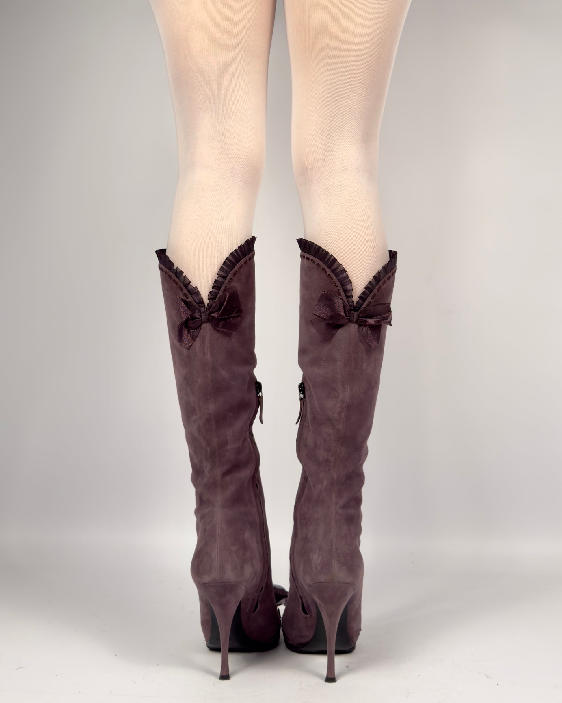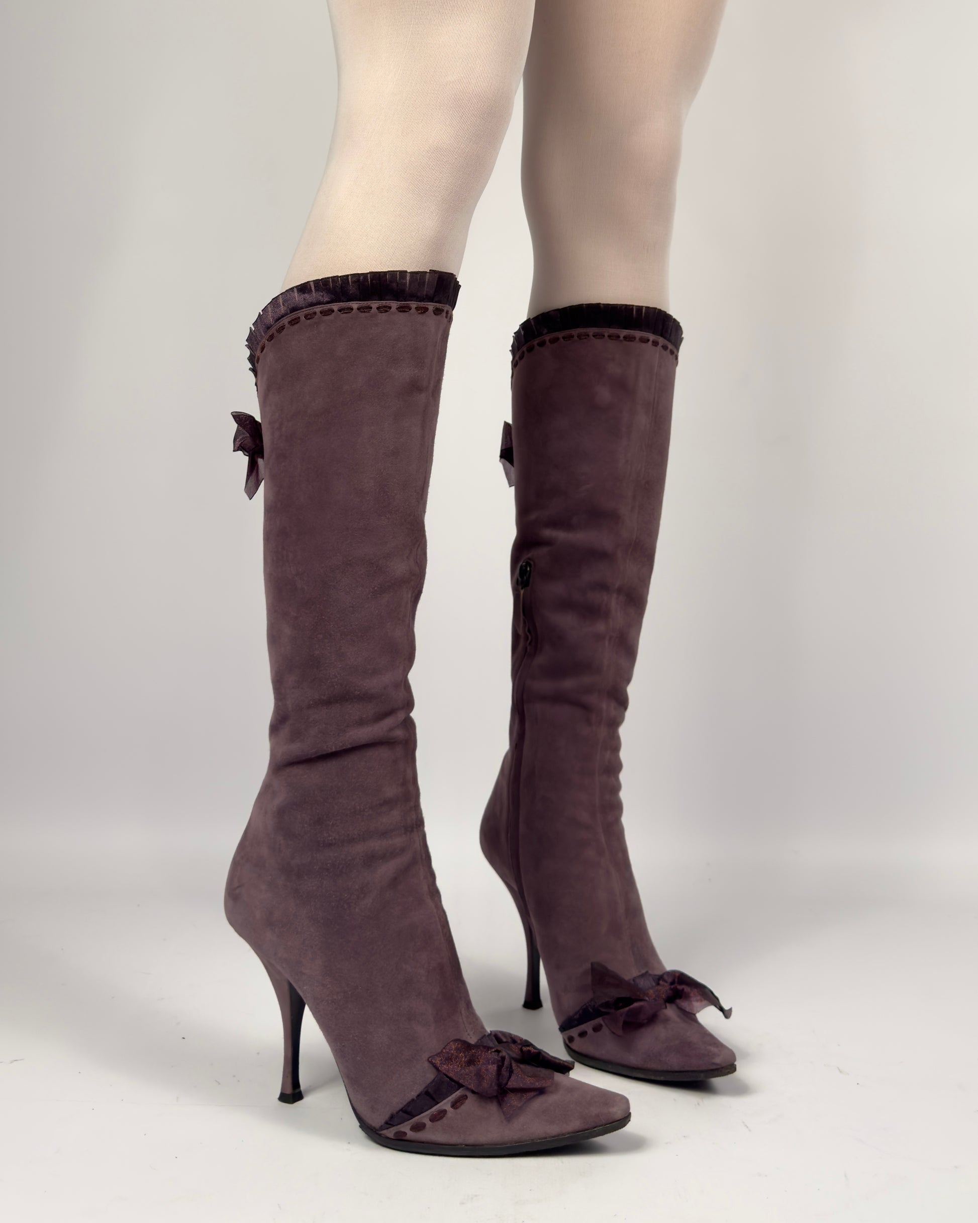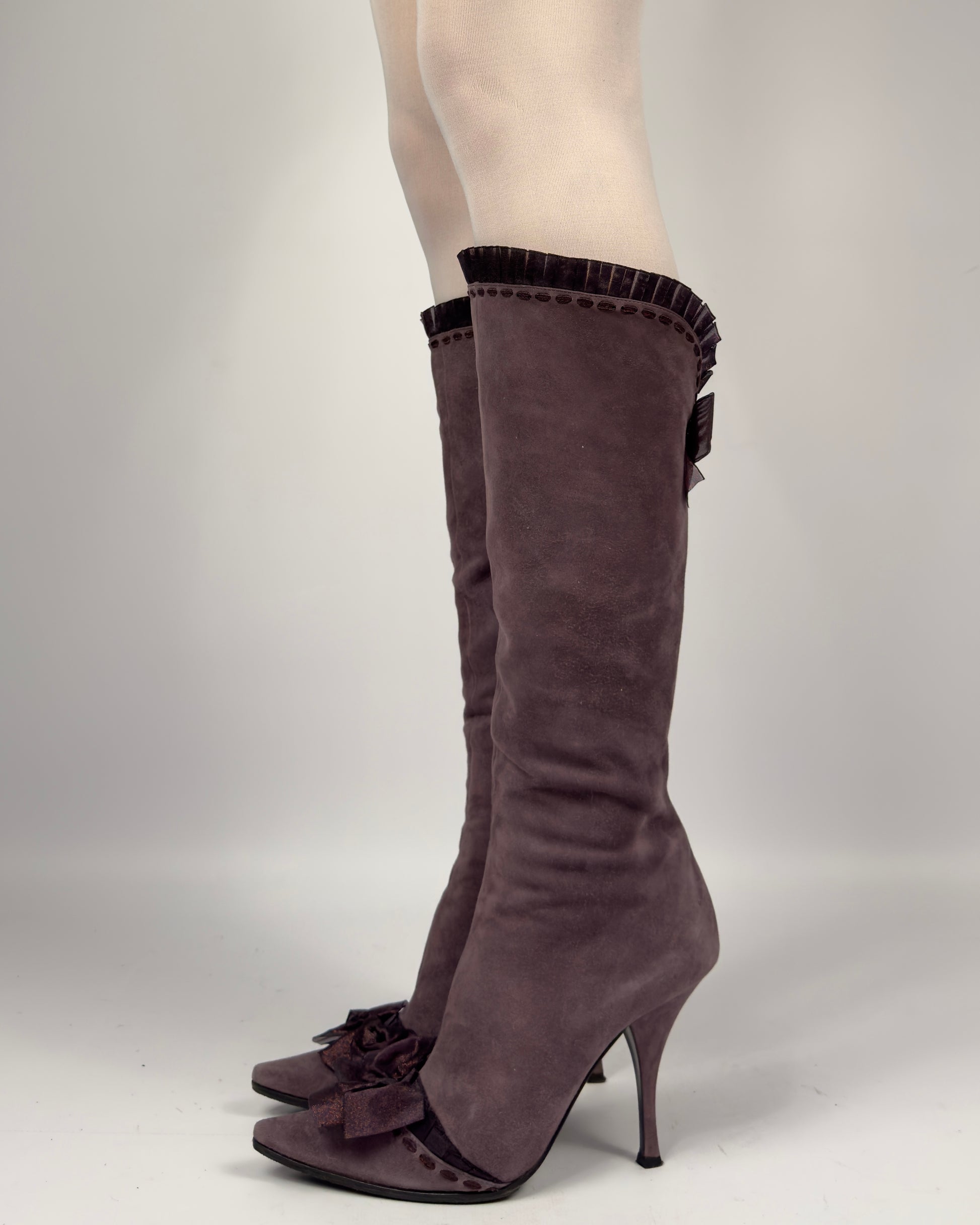 Casadei Vintage Suede Bows Boots — 37/37.5