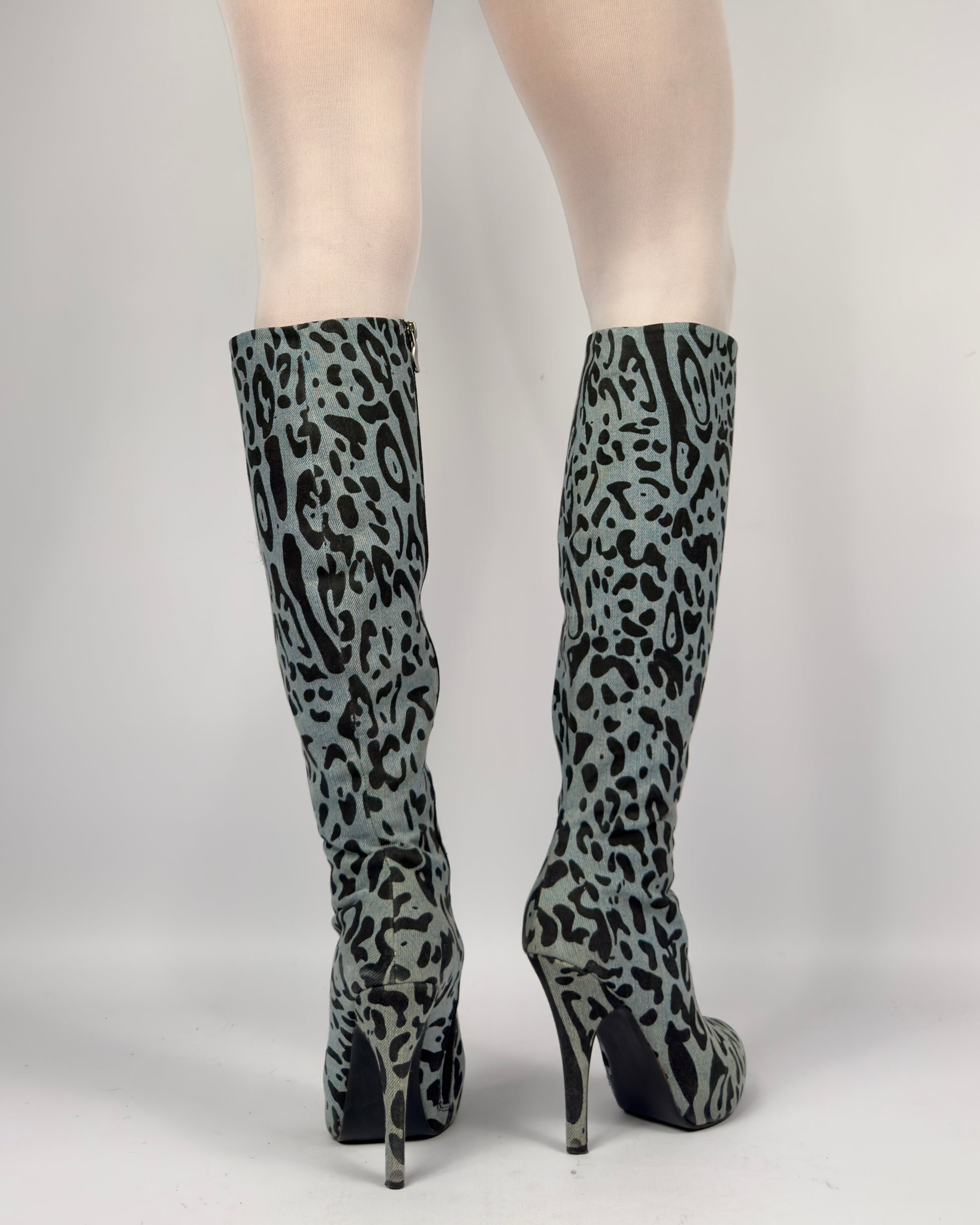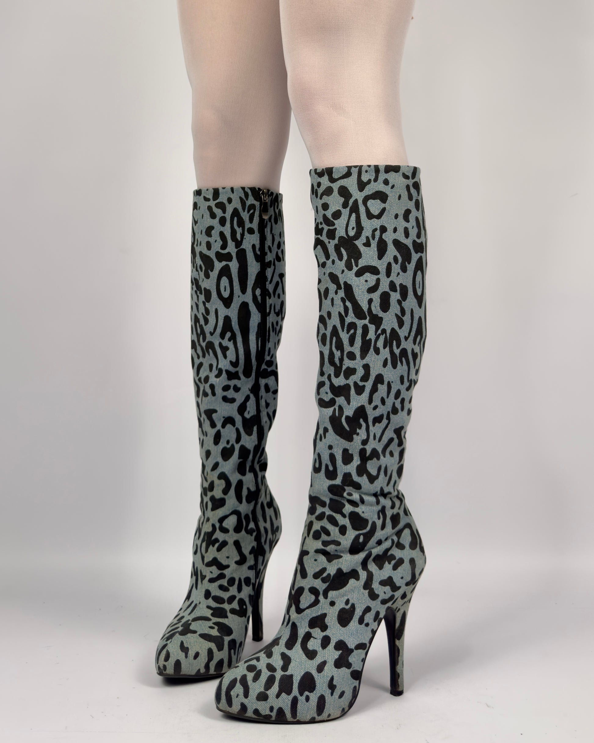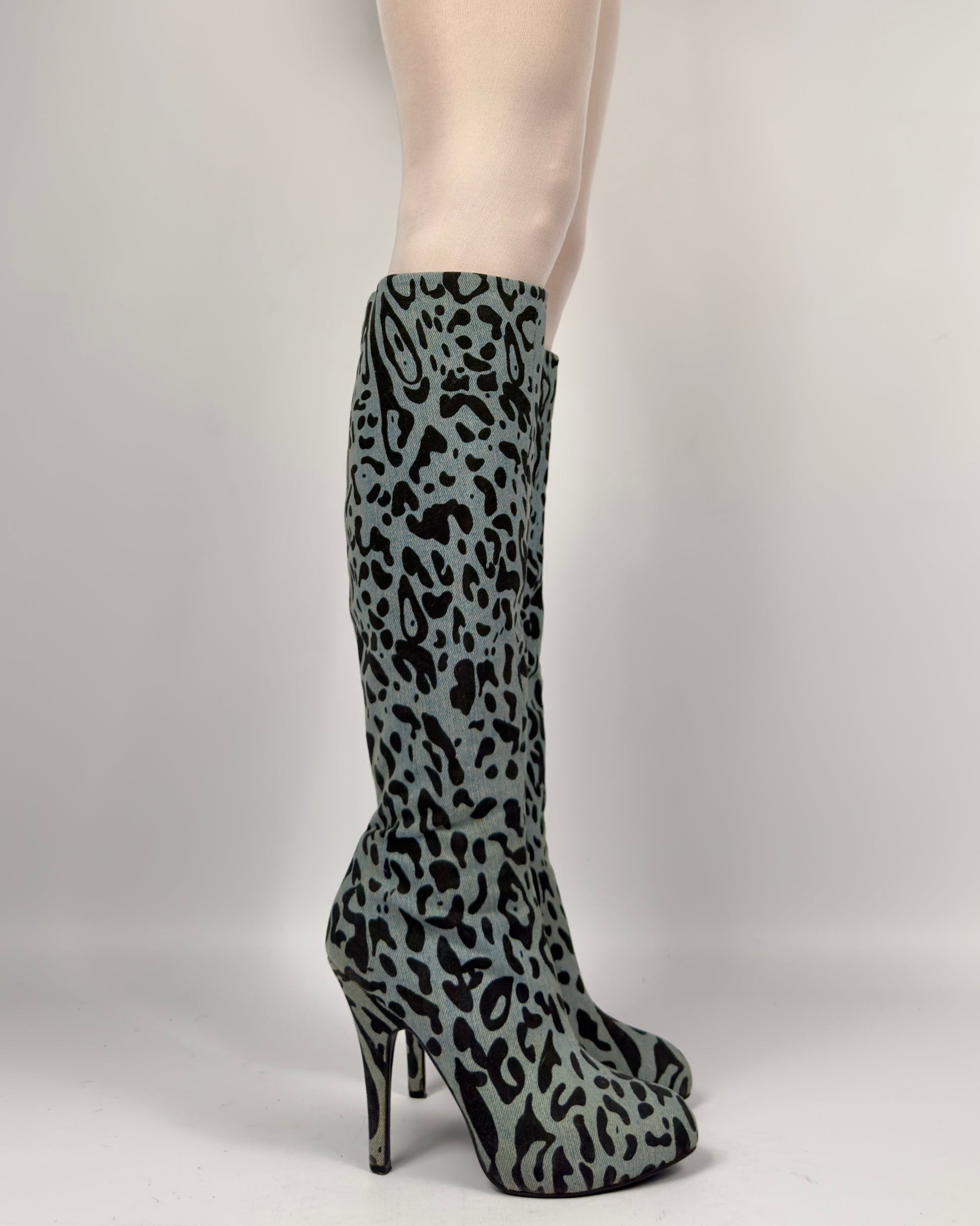 D&G Denim Leopard Boots — 37/37.5