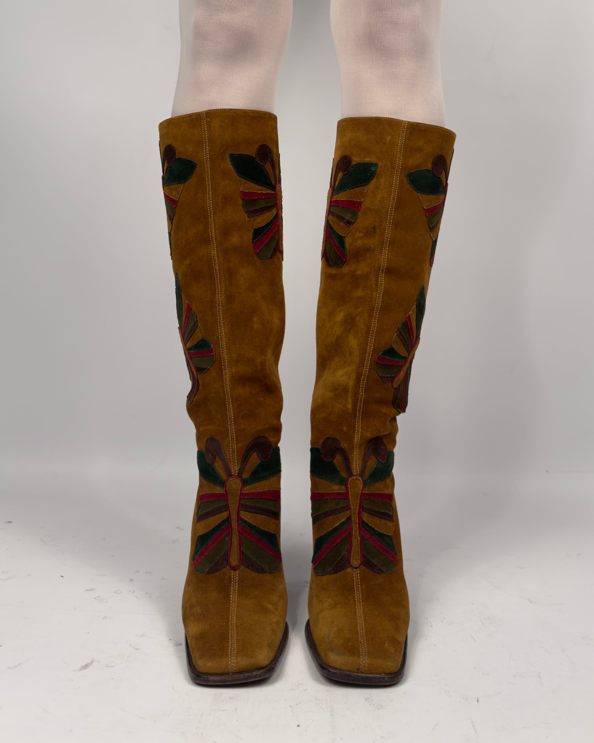 Dolce Gabbana FW02 Vintage Butterfly Suede Boots — 38