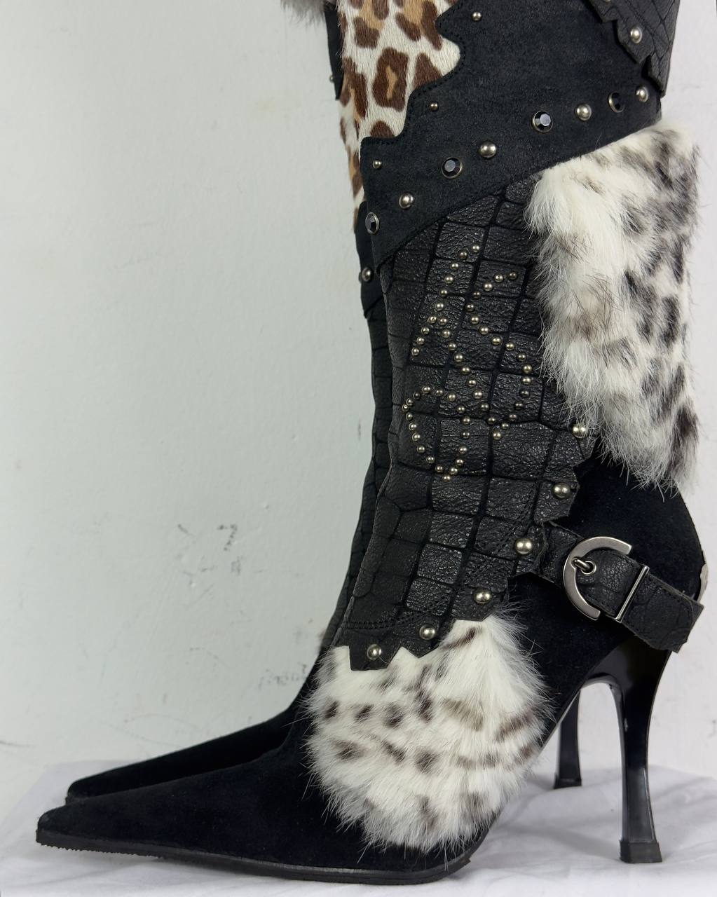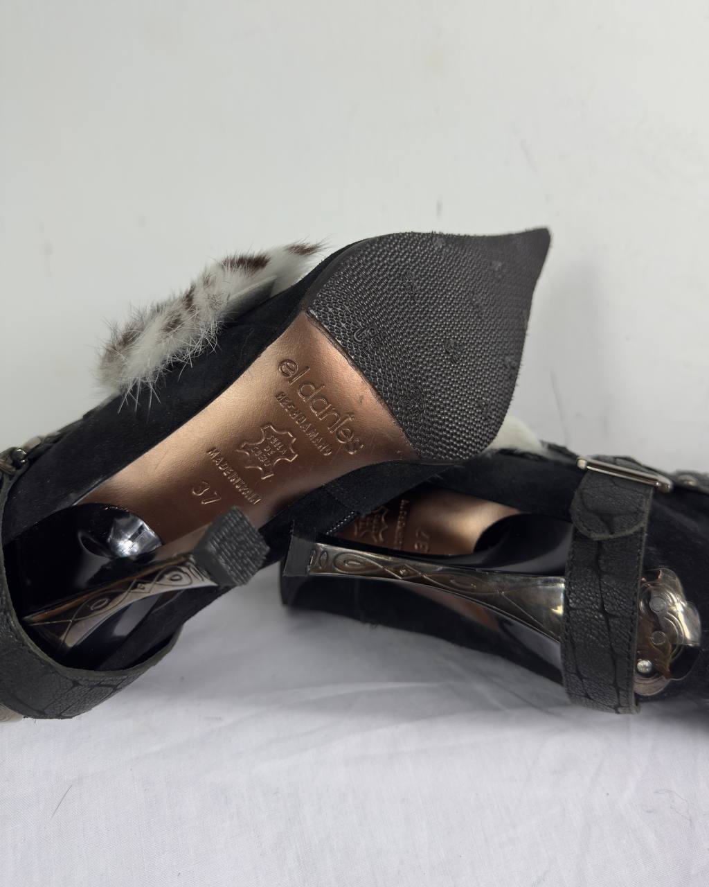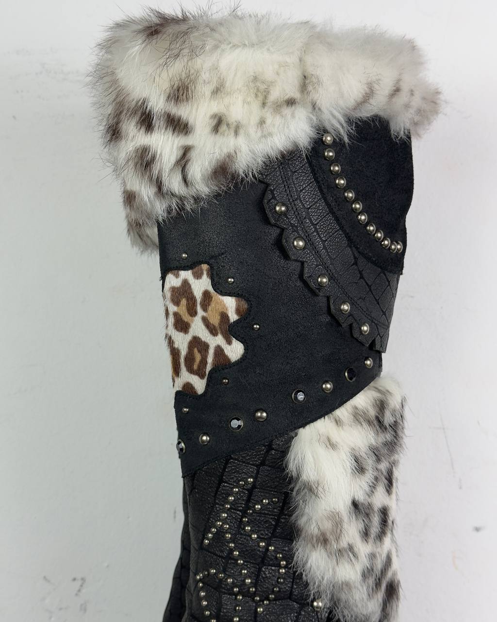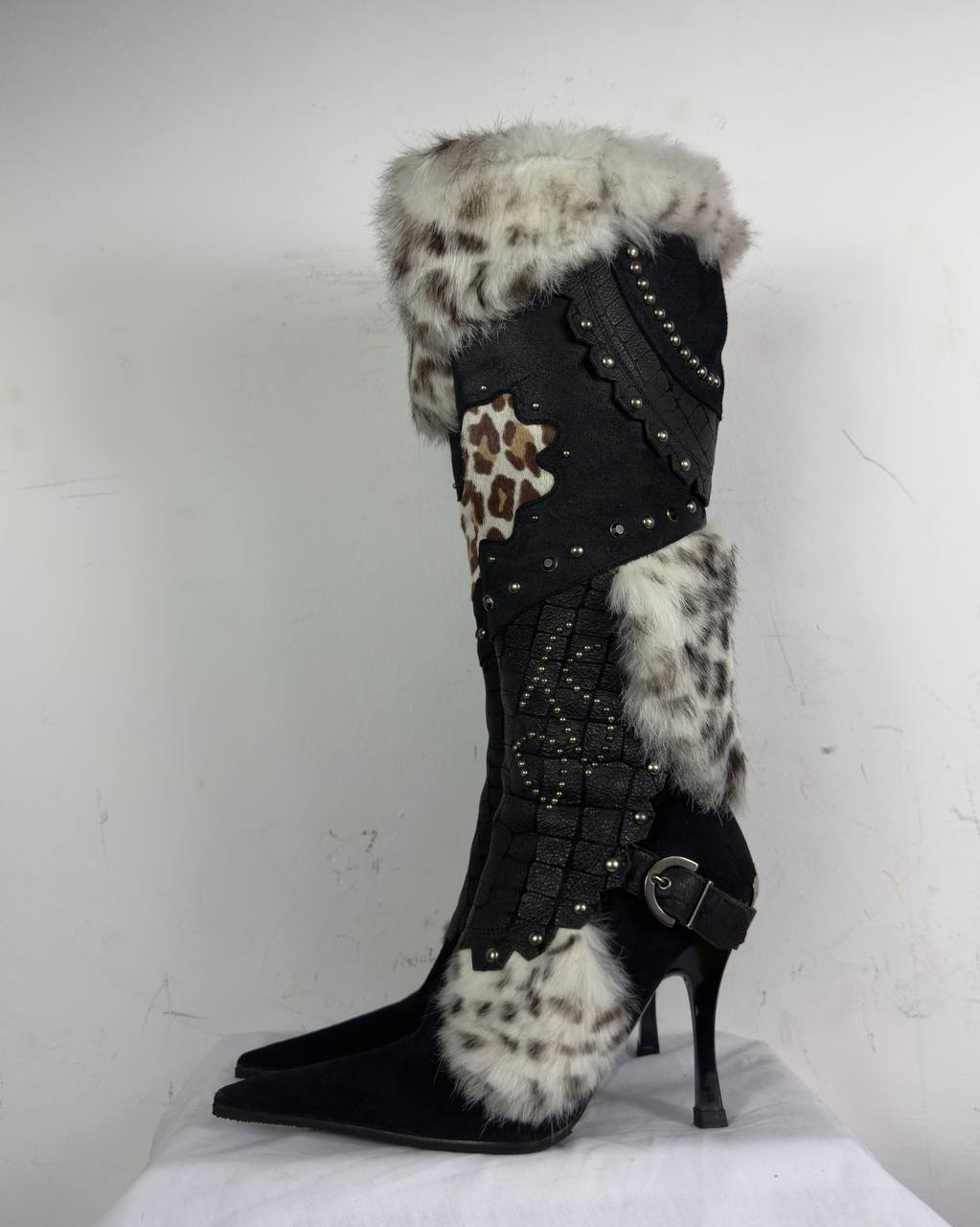 El Dantes Couture Leather Fur Vintage Boots 37