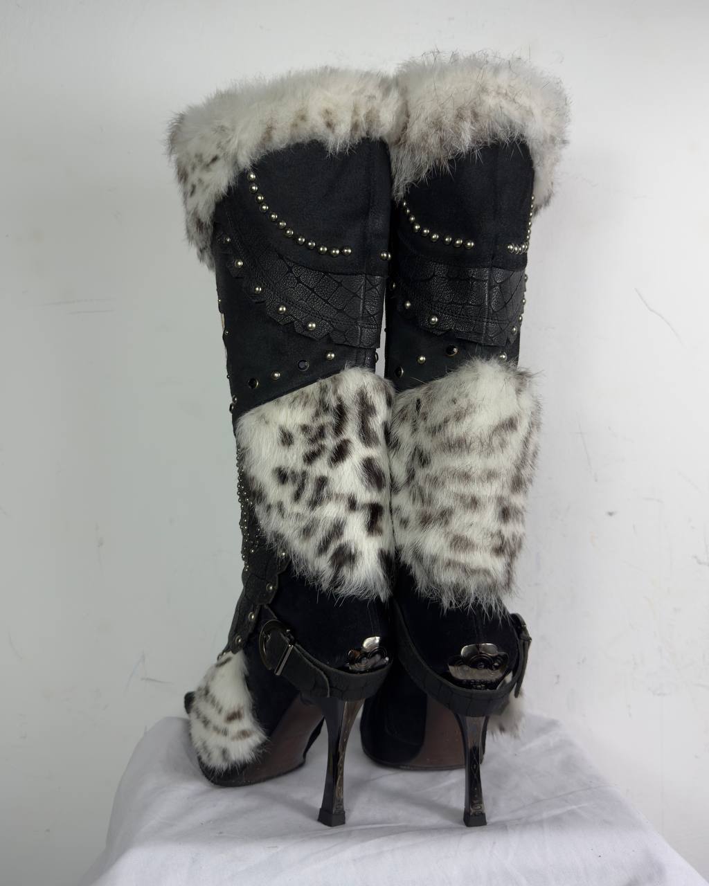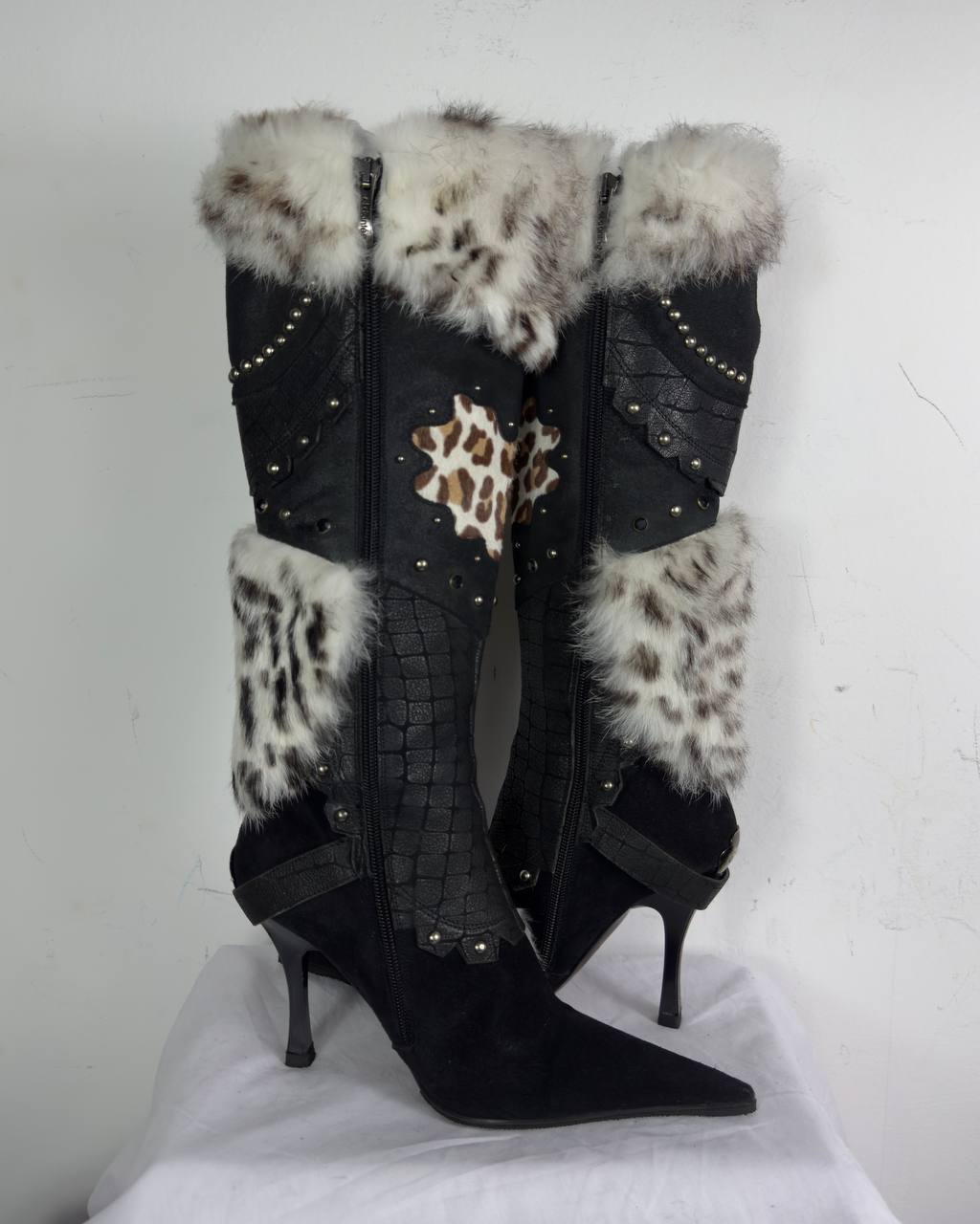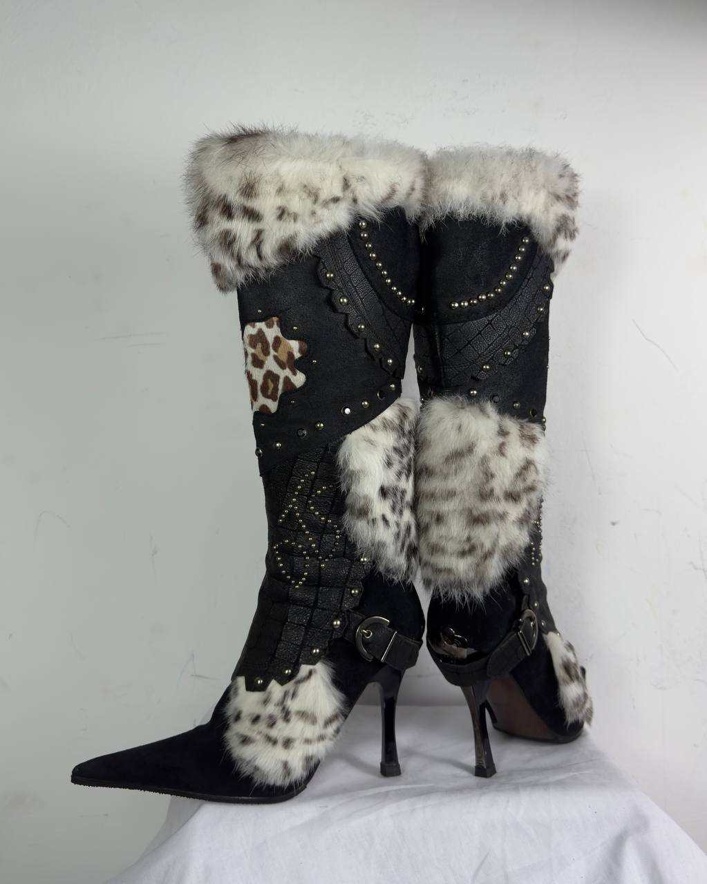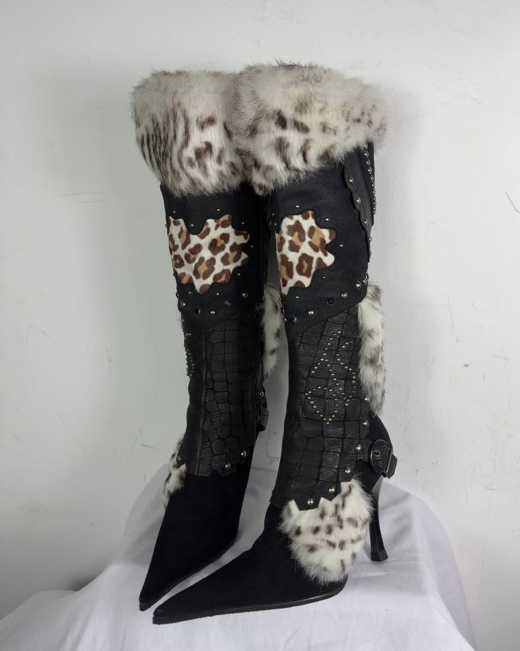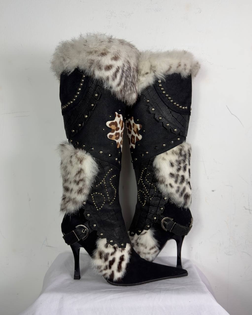 El Dantes Couture Leather Fur Vintage Boots 37