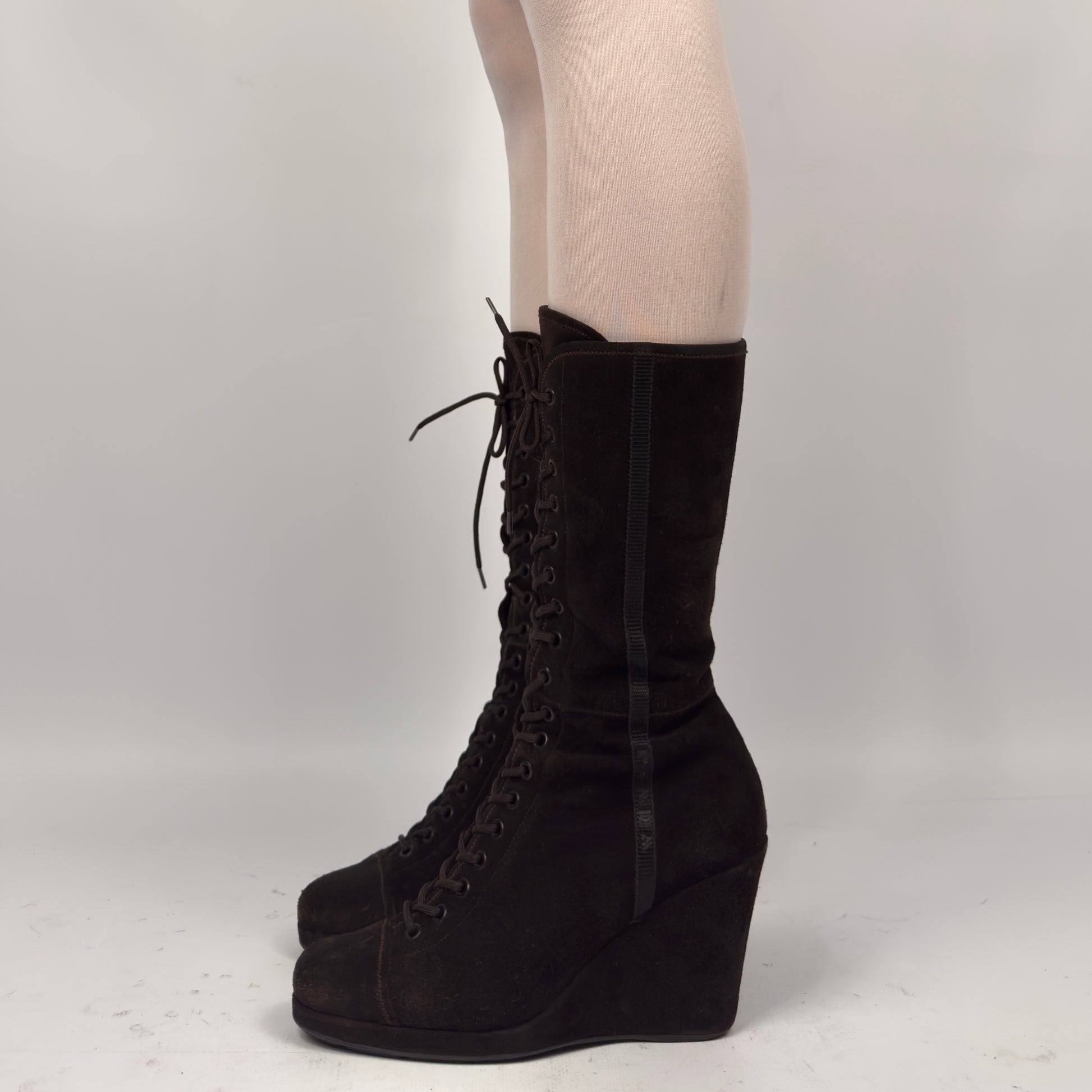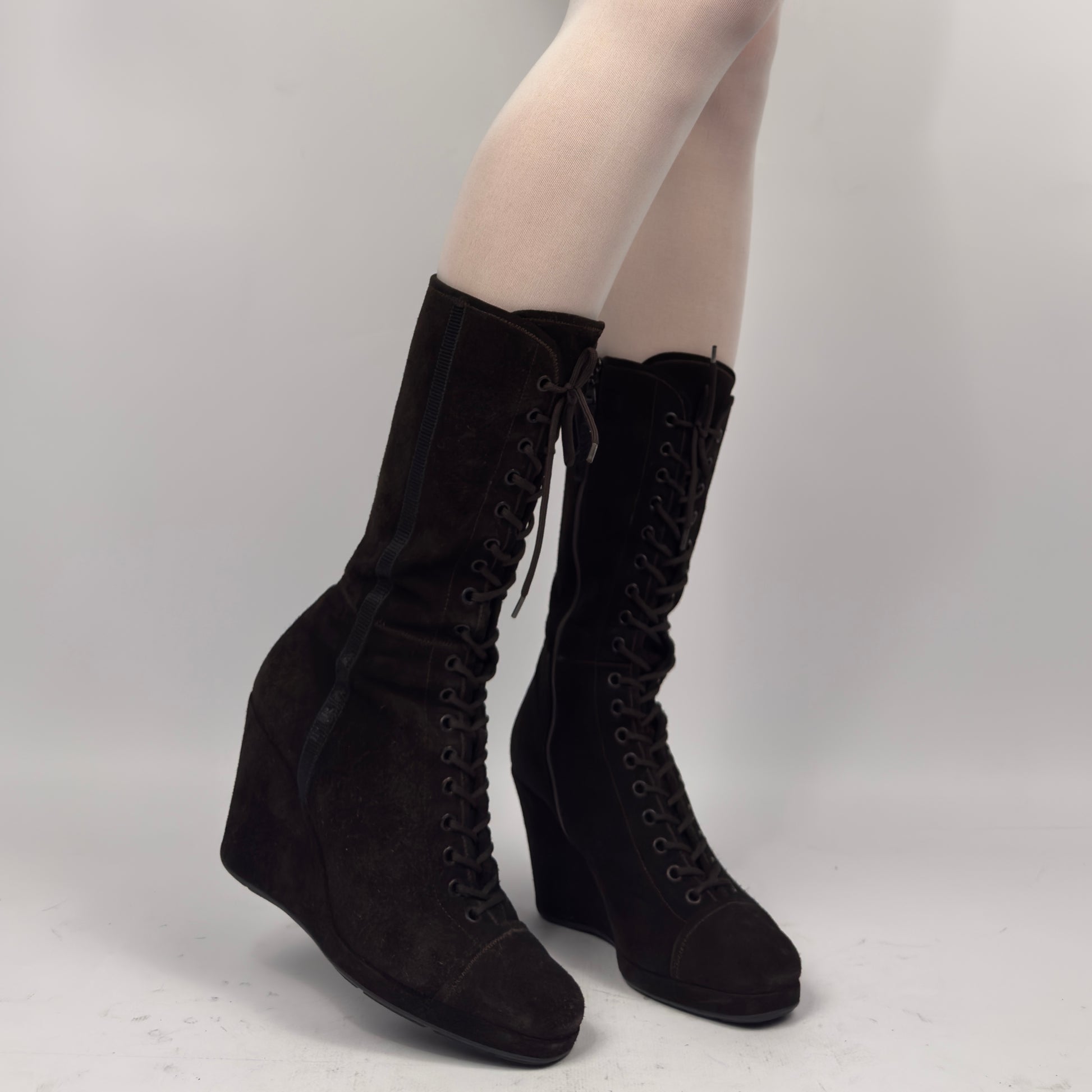 Prada Vintage Suede Wedge Boots — 37/37.5