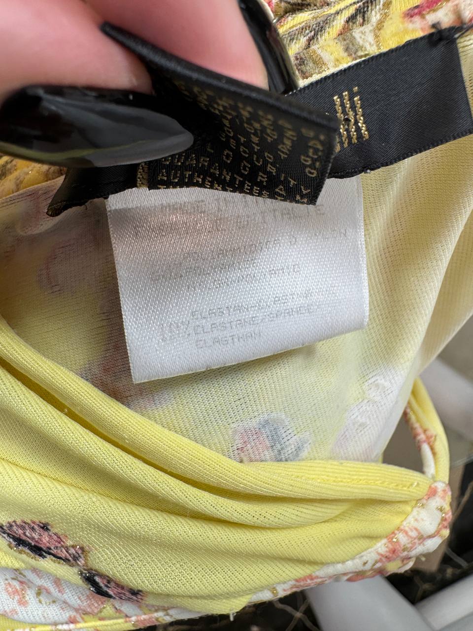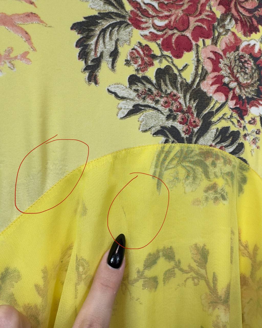 ❣️The fabric has some light surface texture and stretch lines in places (as shown), typical for delicate vintage elastic fabric when worn or stored over time. These are visible primarily under certain lighting or at close range, but not noticeable when worn or photographed. Under the bottom ruffle (invisible when styled), lining under the ruffle silk has a faint line and dots, possibly from prior heat exposure (like an iron). Small red spots in the back of the dress near the bird. None of this affects the fit, wearability, or stunning look of the piece. ❣️