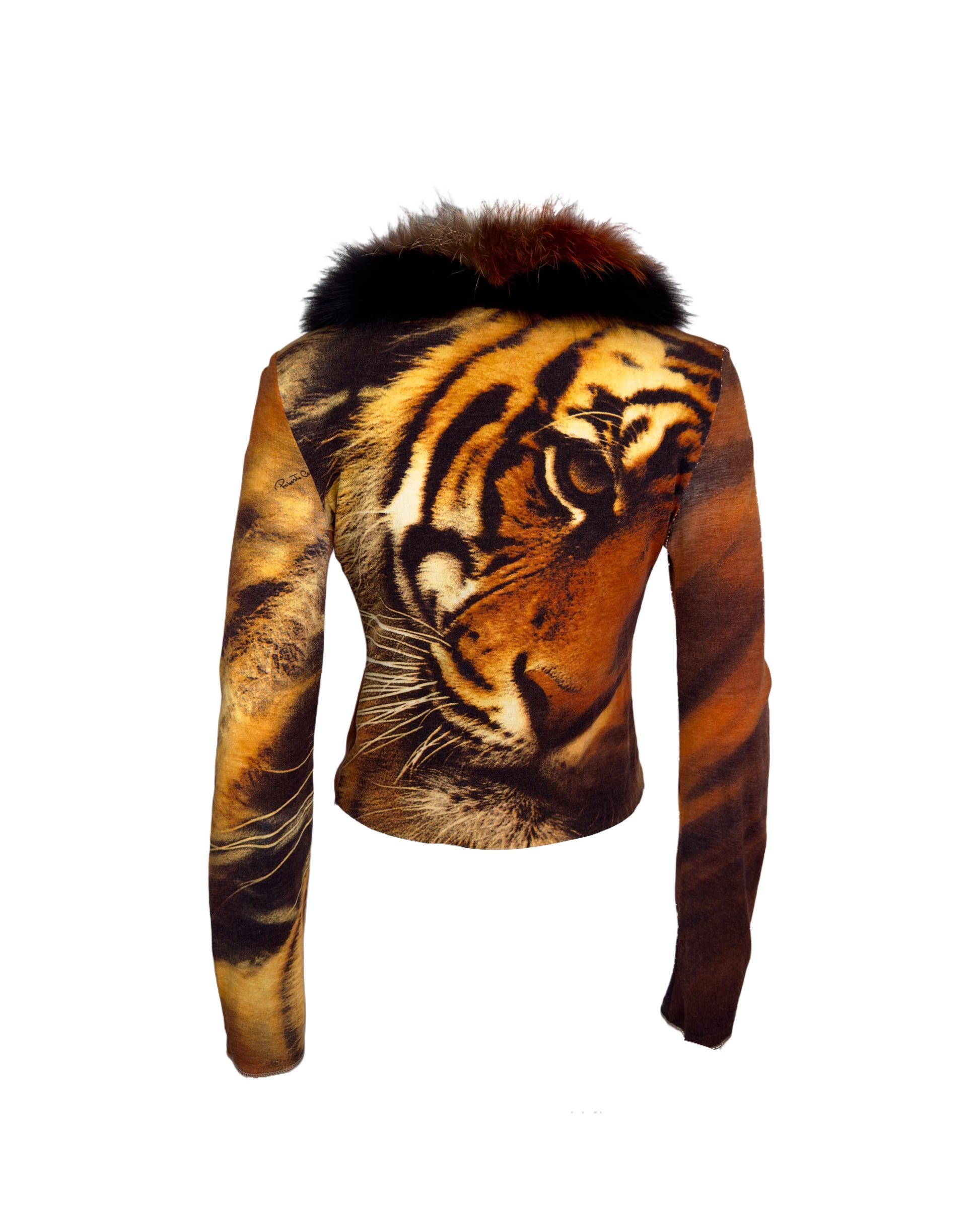 Roberto Cavalli F/W 2000 Tiger Print Fur Trim Cardigan