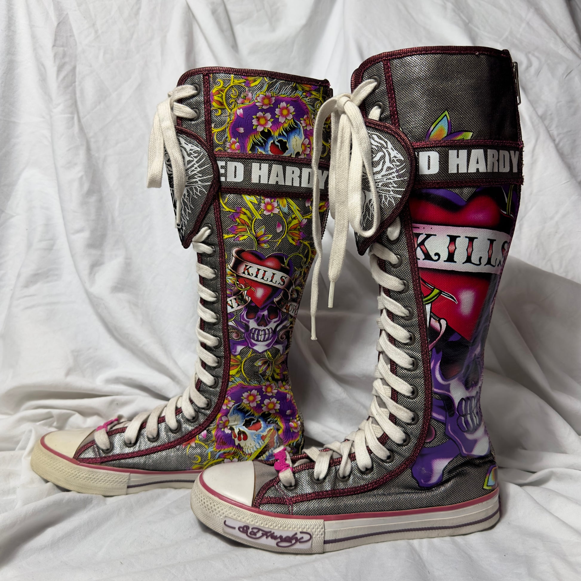 Ed Hardy 2000s Tattoos Lace Up Boxing Boots
