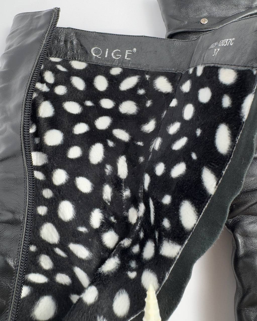 genuine leather, pre-owned item, minor signs of wear may exist on heels and leather