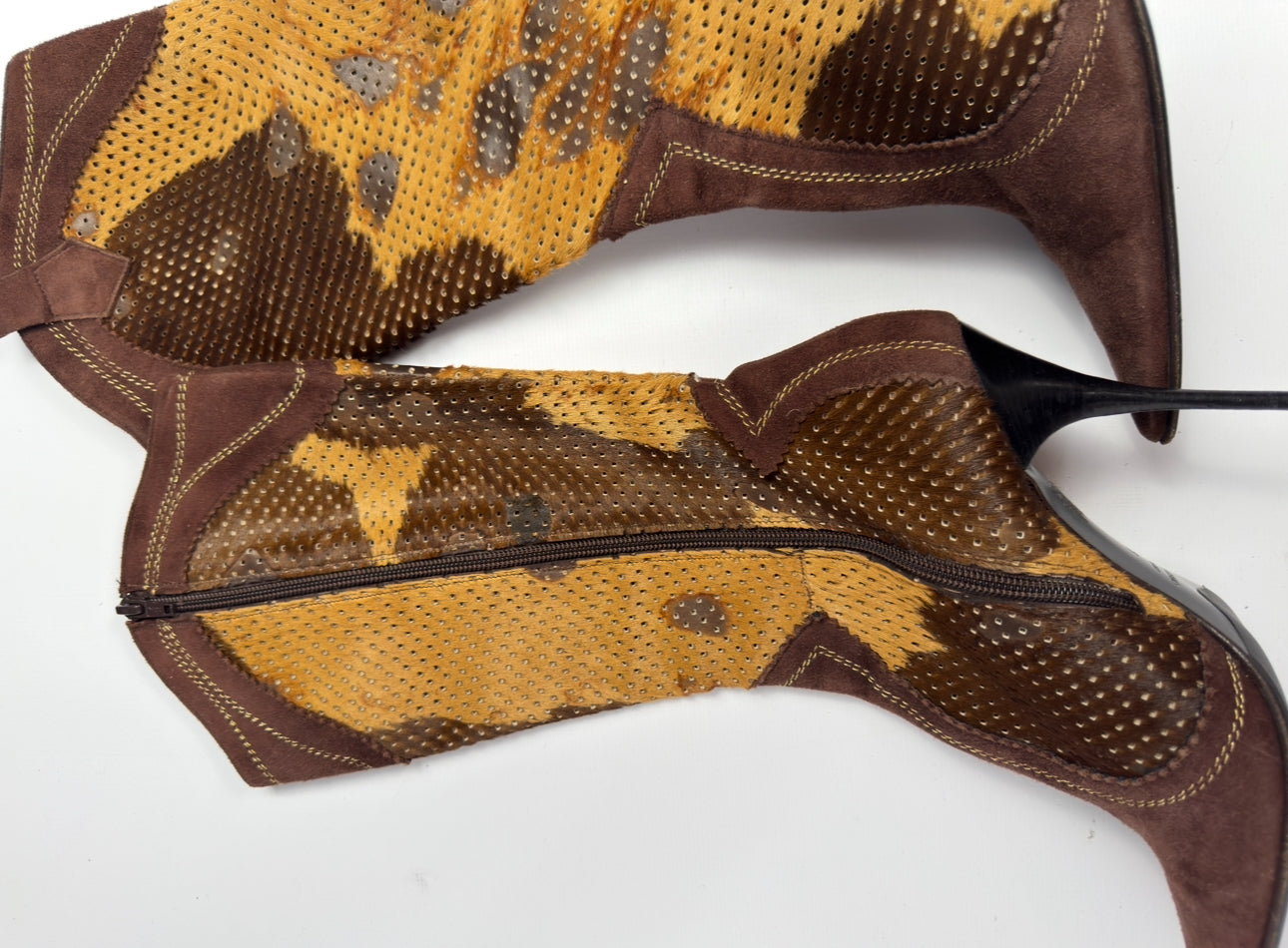 Vintage Italian Pony Fur Cowboy Heel Boots — 38