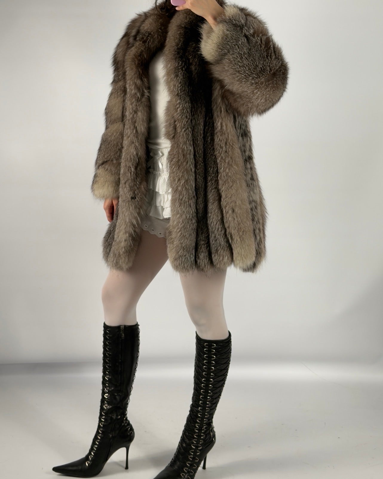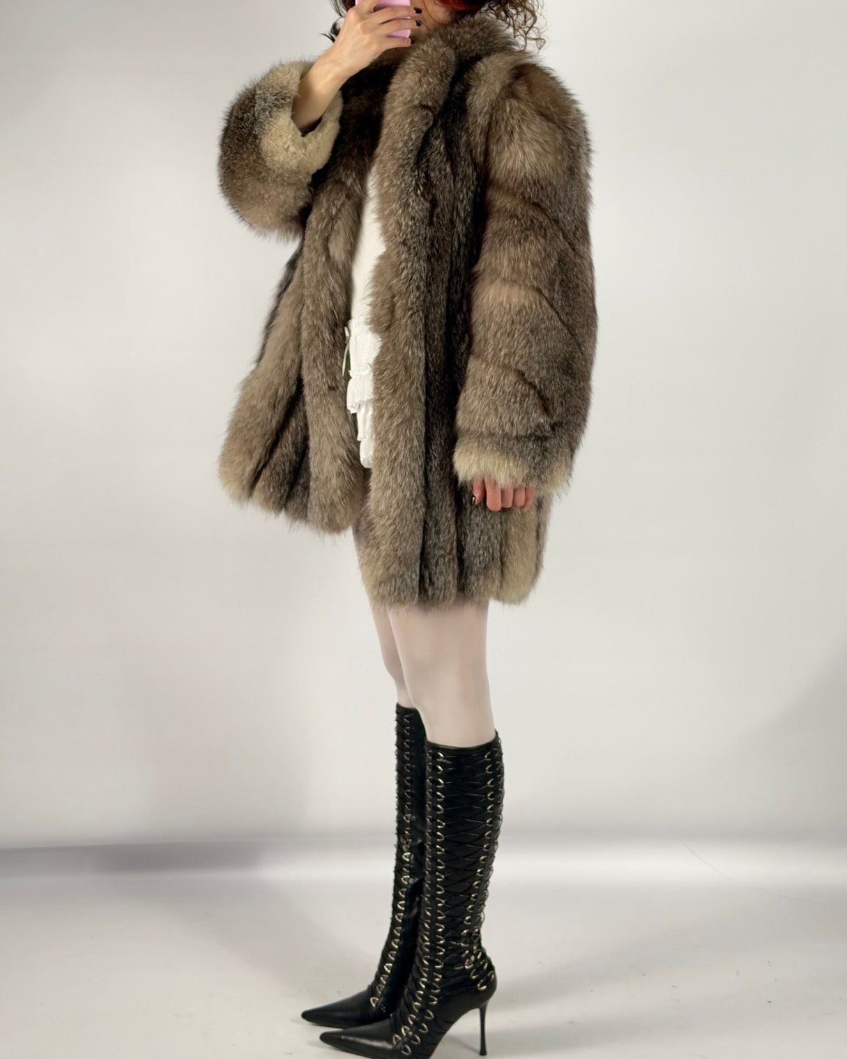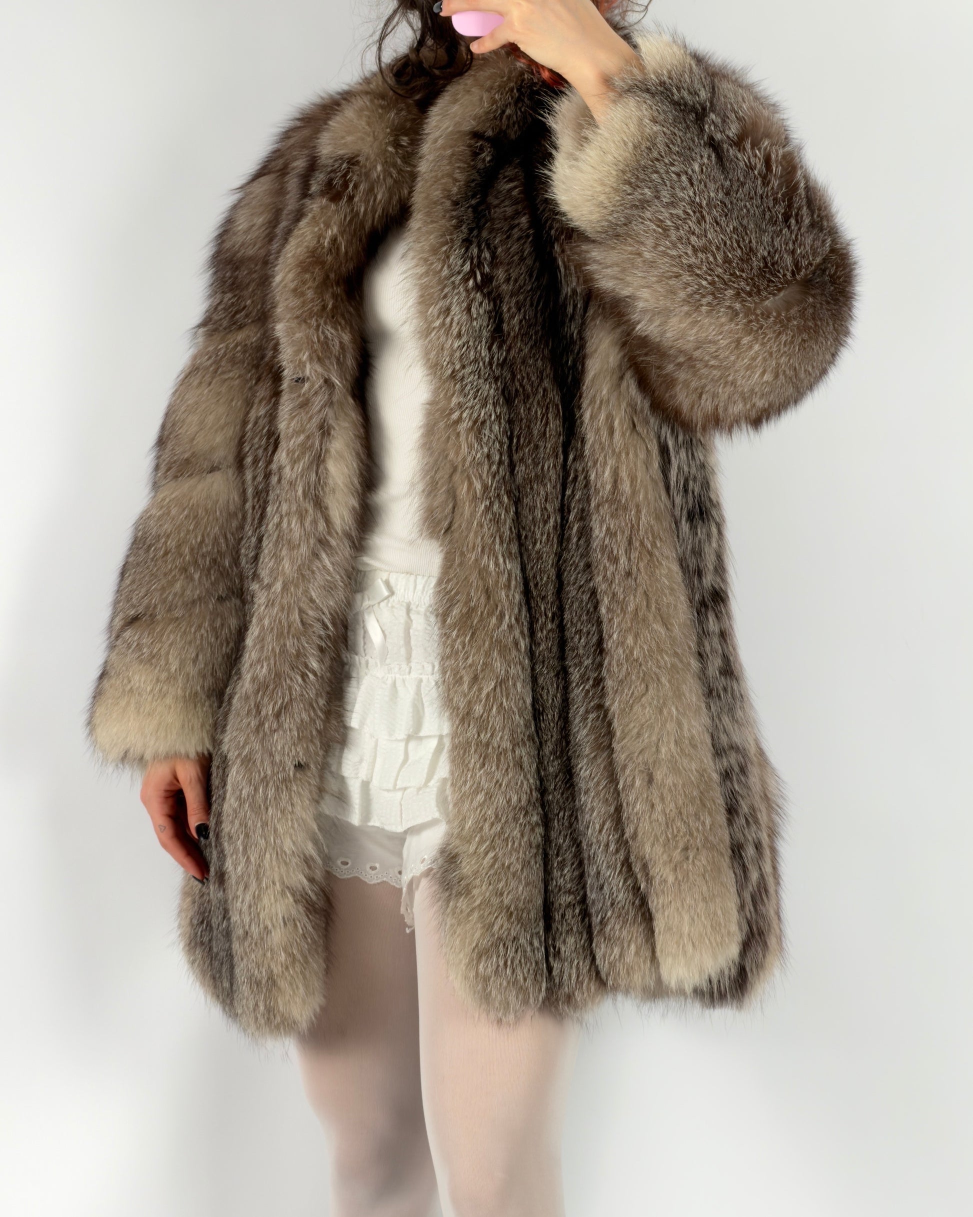 Vintage Polar Fox Fur Coat — S/L